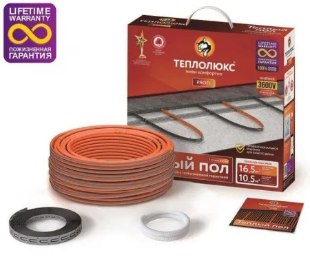 Нагревательный кабель состоит из двух нагревательных жил, двухслойной изоляции, экранирующей оплетки для обеспечения безопасности и наружной оболочки для защиты от возможных механических повреждений. Установочный провод соединяет нагревательный кабель с терморегулятором и защитным заземлением.
